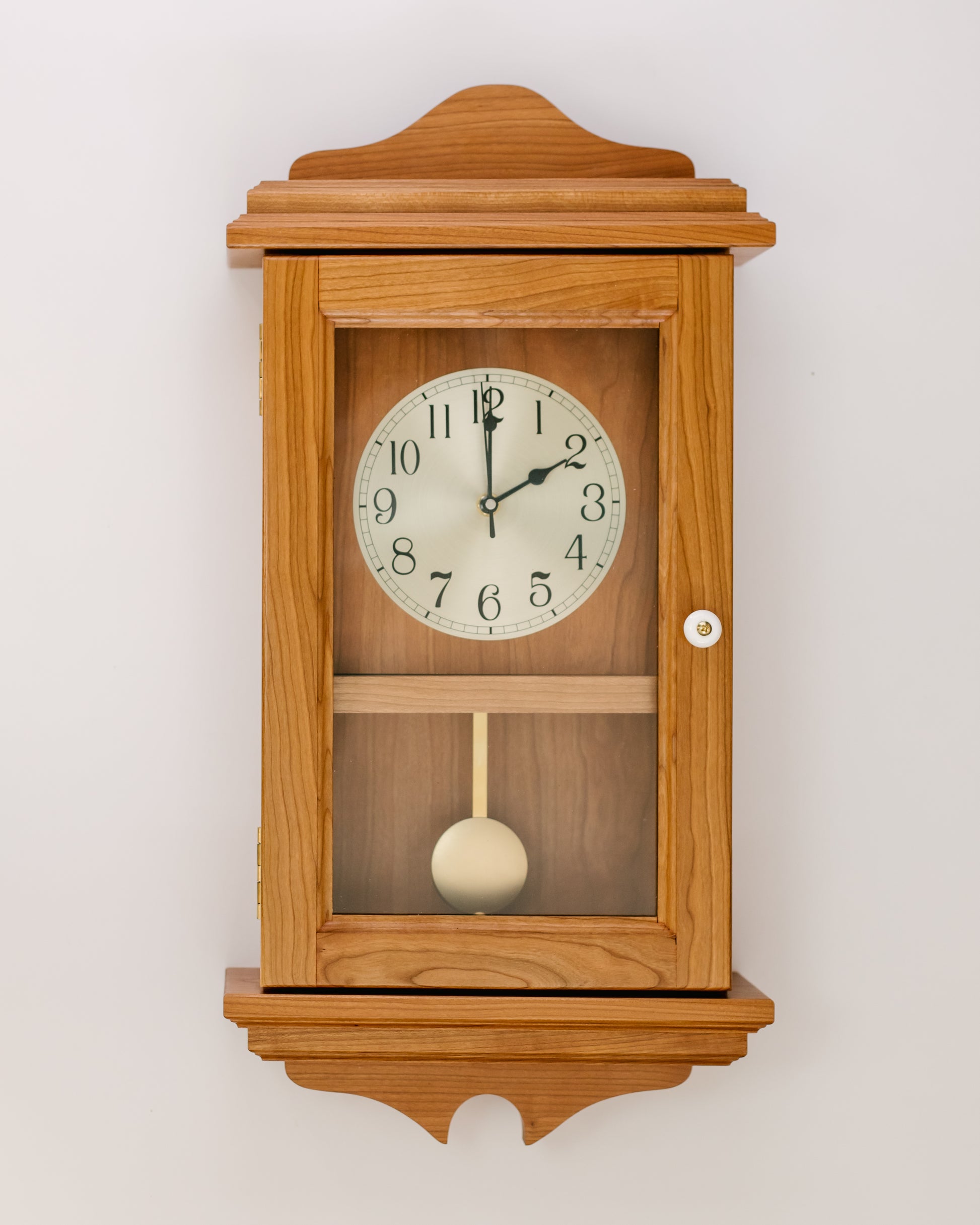 - Material: Available in solid Cherry, Maple, or Walnut, each clock is meticulously crafted from premium solid hardwood, showcasing the natural grain and beauty of the wood.