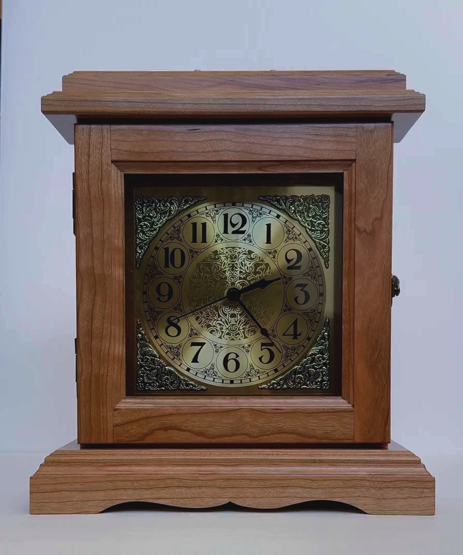 This handcrafted hardwood mantel clock combines timeless elegance with modern convenience. Carefully crafted from premium solid hardwoods, Cherry, Walnut, and Maple, the clock showcases the natural beauty of its grain, enhanced by a smooth finish that radiates warmth and sophistication. Its compact yet striking design features clean lines and a classic silhouette, making it a perfect addition to any mantel, desk, or shelf.